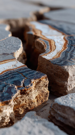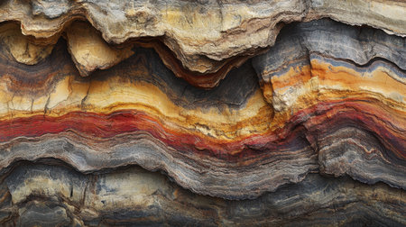 intricate design of a cross-sectioned sedimentary rock, created with generative ai