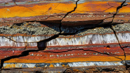 This captivating view showcases a cross-section of Earths crust, highlighting diverse layers of minerals and geological formations in remarkable detail, ideal for educational purposes.