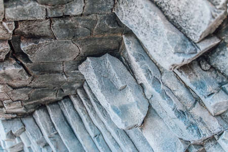 Natural stone texture. Basalt lava formations like columns. Icelandic typical natural background. Volcanic Basalt Coloumn Formations in Iceland