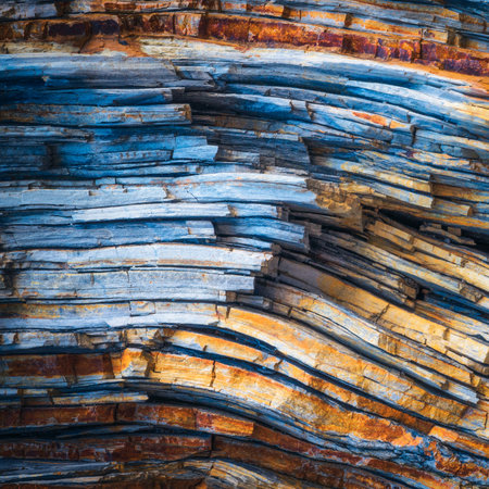 Explore the intricate layers of sedimentary rock showcasing stunning patterns and rich earth tones. Ideal for nature and geology enthusiasts, this captivating image highlights the beauty of natural formations.