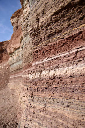 Close-up of the layers of soil in a quarry. Abstract background