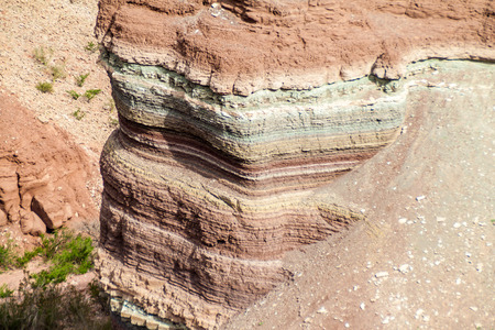 Colorful layered rock formations in Quebrada de Cafayate valley, Argentina. National park Quebrada de las Conchas.