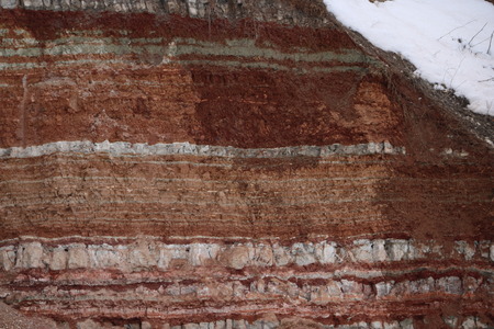 the texture of different layers of clay underground in a clay quarry after geological study of the soil.