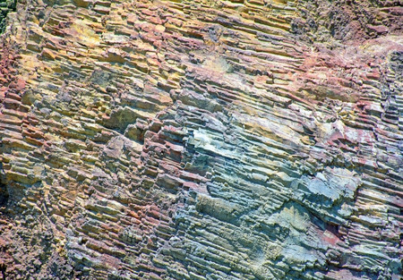 Macro shot of colorful layered rock surface with cracks