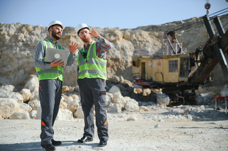 Construction workers overseeing excavation of valuable mineral deposits