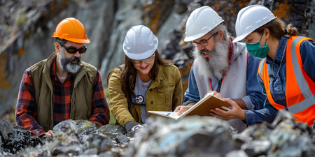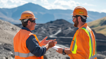 Engineers discussing mine safety protocols on-site.