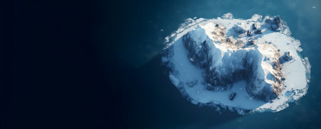 Aerial view of icebergs floating in the ocean. Beautiful natural background.
