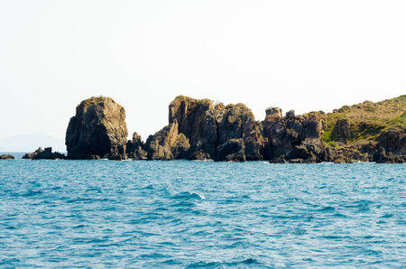 Island in the ocean. Rocks in the water. Beautiful landscape.