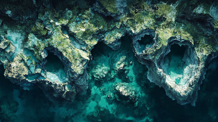 Aerial view of beautiful coral reef and turquoise sea water
