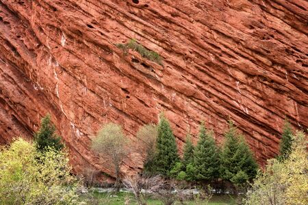 Red rock formations called Seven Bulls in Jety Oguz, Tien Shan mountains, Kyrgyzstan, Central Asia