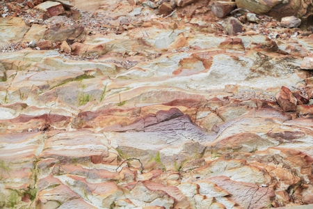 Macro shot of colorful layered rock surface with cracks