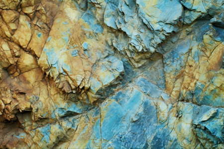 abstract blue yellow brown background colorful rock texture cracked layered mountain surface close up grungy stone background with space for design