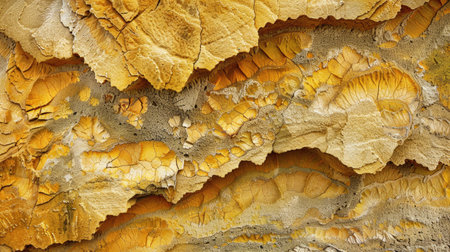 Close-up view of a natural rock formation showcasing intricate textures and vibrant gold veins, highlighting the beauty of geological wonders in nature.