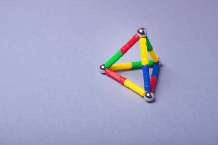 Bright magnetic constructor for children: creating shapes from sticks and balls. Development and logic.