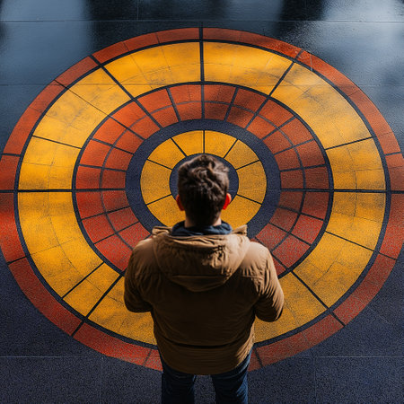 This vibrant image features a striking arrangement of geometric shapes in various colors on a bold split background, perfect for artistic themes and modern design projects.