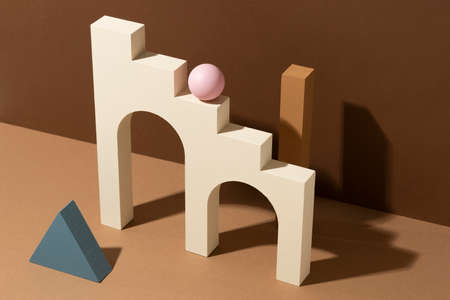 Minimalistic abstract composition with simple geometric figures. Still life background with elegant triangles and other forms. Harmony concept backdrop with shapes. Laconic geometry set construction