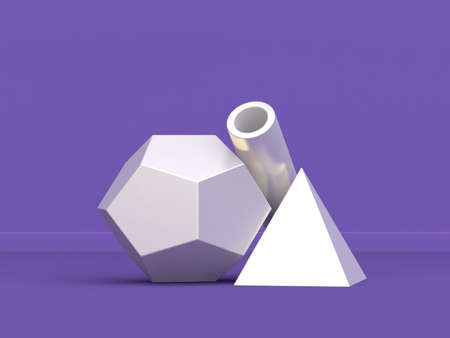 Still life presentation of geometric objects, 3d rendering. Computer digital drawing.