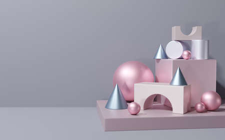 abstract geometric forms. Minimal scene with podiums.