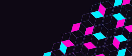Stylish structure hexagonal line geometric pattern background. Abstract geometric backdrop with neon isometric blocks. modern vector illustration.