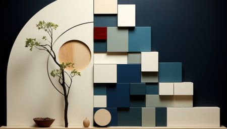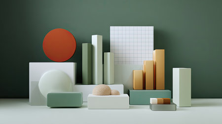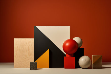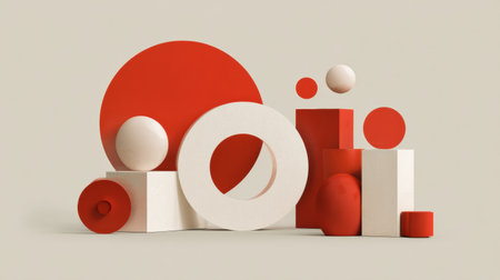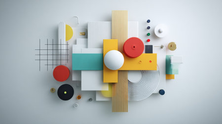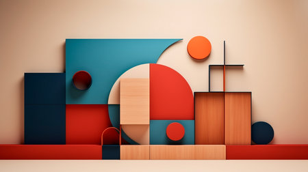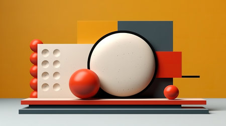 Minimalist geometric composition. Bauhaus 3d render design, Bright color. Generative Ai