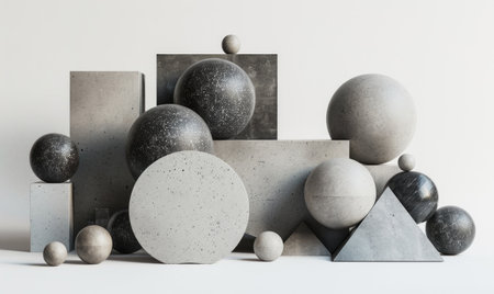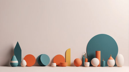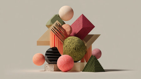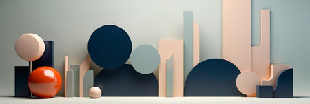 A visually captivating arrangement of geometric shapes in soft tones set against a minimalist backdrop. Ideal for modern design projects and creative presentations.