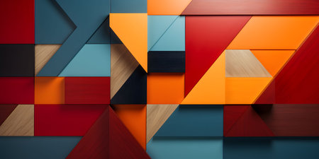 Colorful geometric shapes and patterns in vibrant tonal contrast ideal for modern design, backgrounds, or creative projects, featuring bold colors and dynamic arrangements