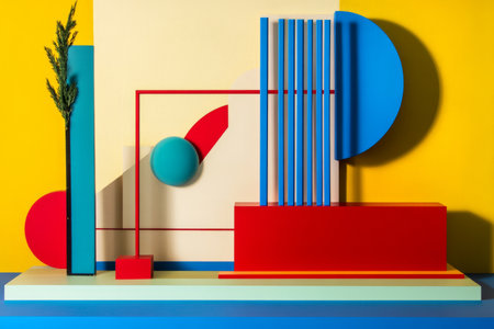 Vibrant abstract podium with geometric shapes and bold patterns for creative design