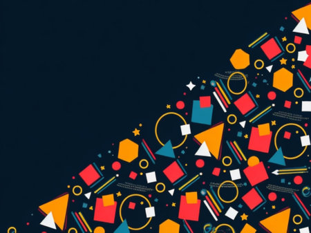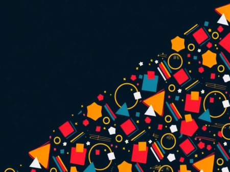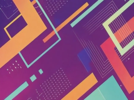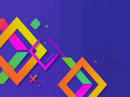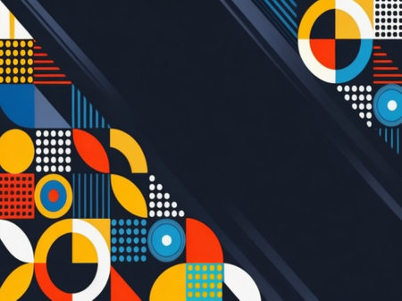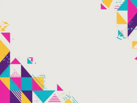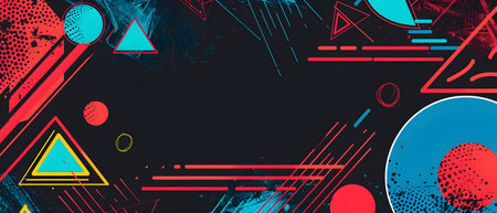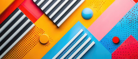 Vibrant retro banner background showcasing colorful geometric shapes and patterns