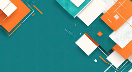 Vector flat background with orange, teal, and white geometric shapes. --ar 78:43 --v 6.1 Job ID: 3e9348cc-e908-446b-9e6b-22d485f4a72d