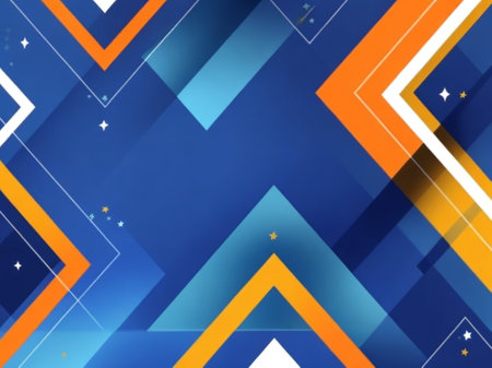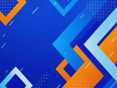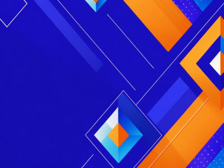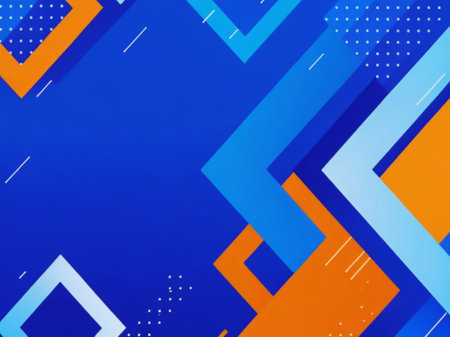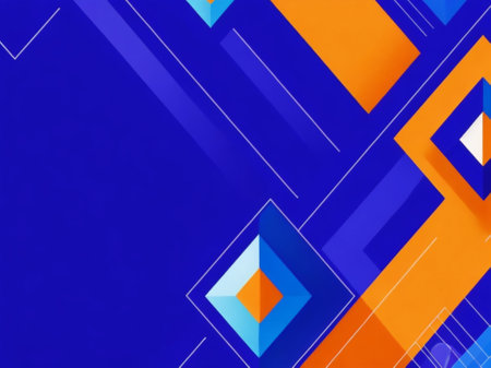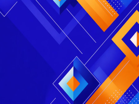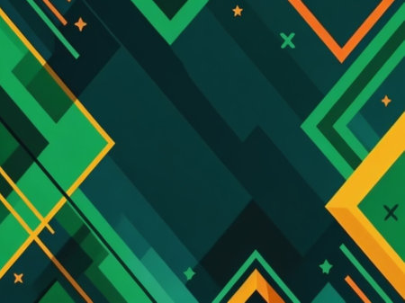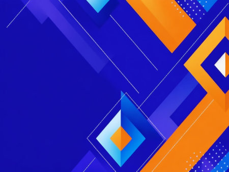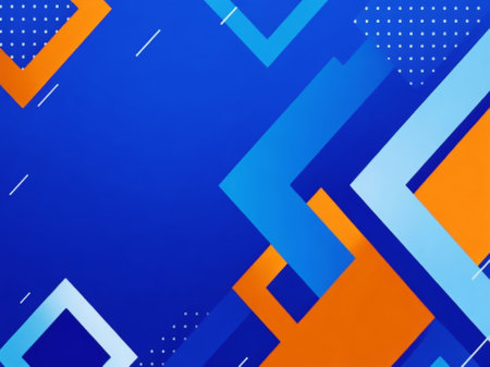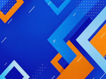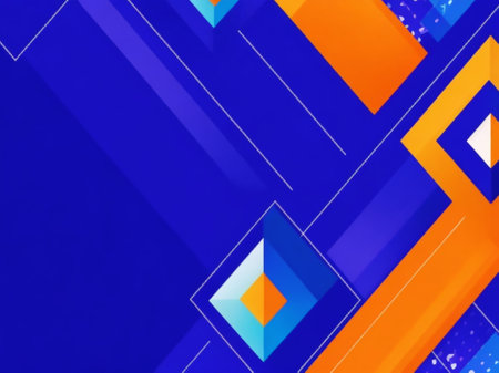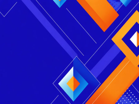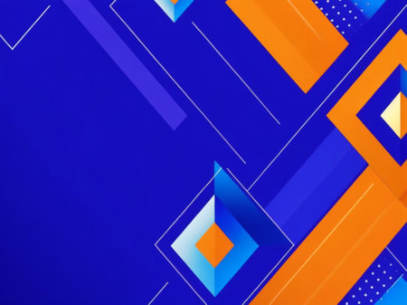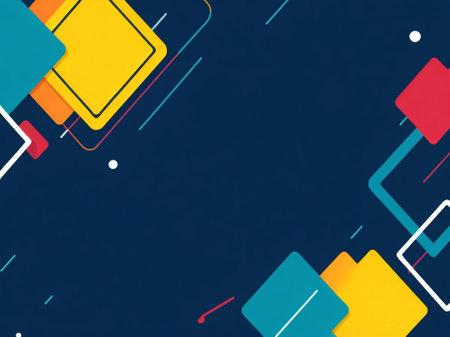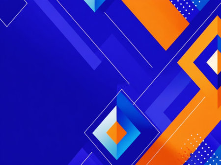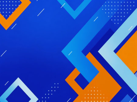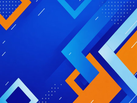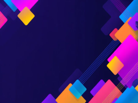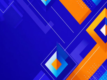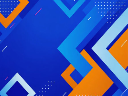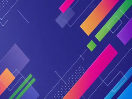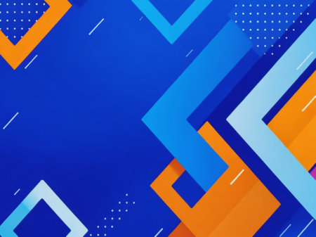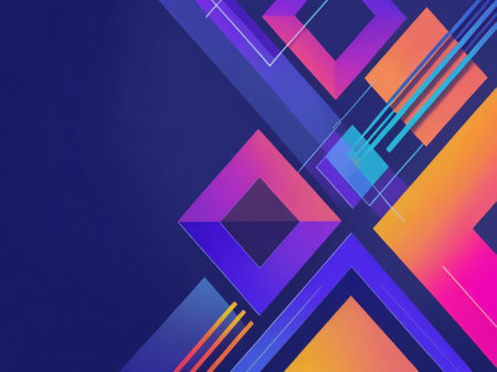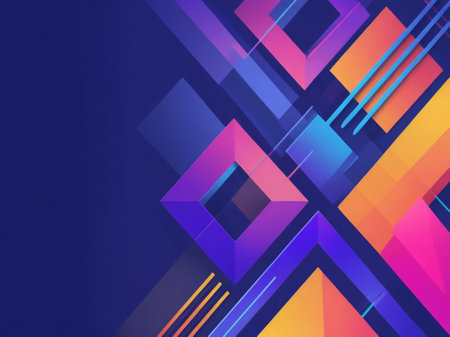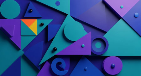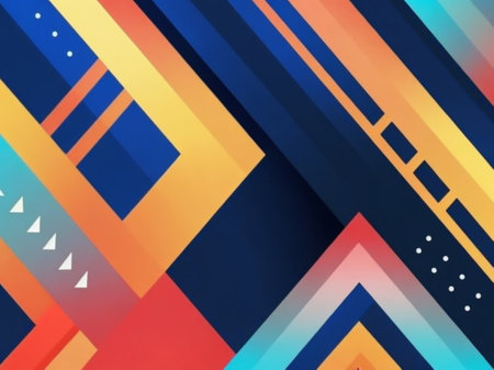 Abstract geometric shapes, vibrant colors, modern design. Composition features overlapping layers, creating dynamic visual impact.