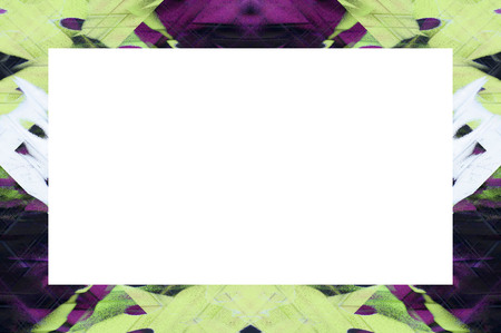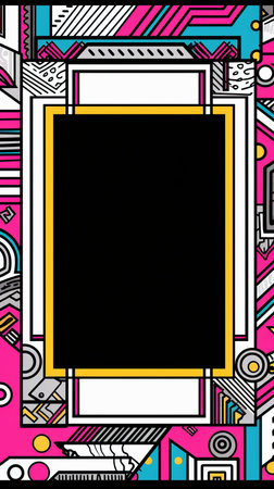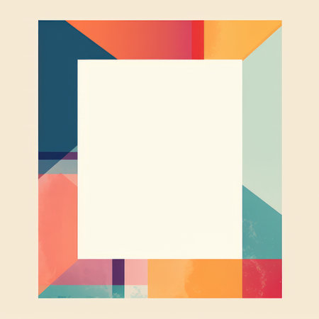 An empty rectangular frame lies at the center, surrounded by various colorful abstract shapes. This design offers a versatile space for creative projects or presentations.