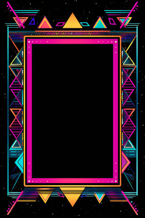 Black background frame with collage decorative geometric ornate pattern mosaic borders in mixed colors