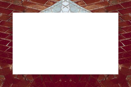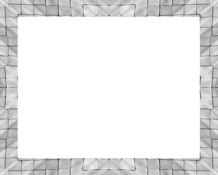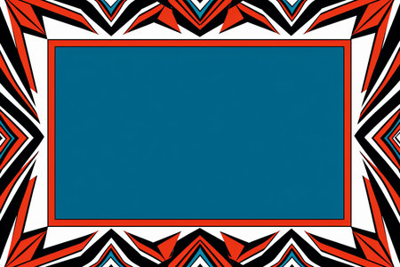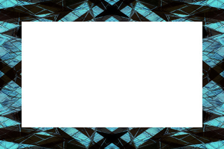A clean and modern geometric frame created from precisely arranged blue and white triangular shapes. The triangles form a symmetrical border around a central white space, creating a visually appealing and organized composition. The crisp lines and contrasting colors give the a contemporary feel. is use as a decorative border, or a background for text and other offering a simple yet impactful visual statement.