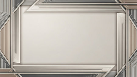 An Art Deco style geometric frame with metallic tones of bronze, gold, and grey surrounding a beige center.