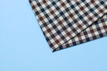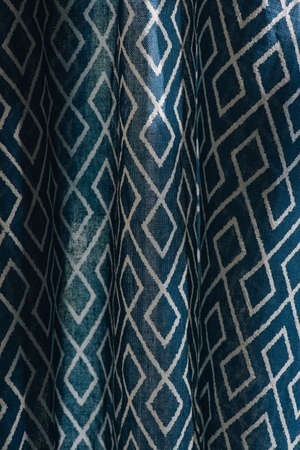 material textile background. Blue fabric in diamonds. Close-up of the white blue diamond shaped fabric textile texture, background. High-quality macro photography.