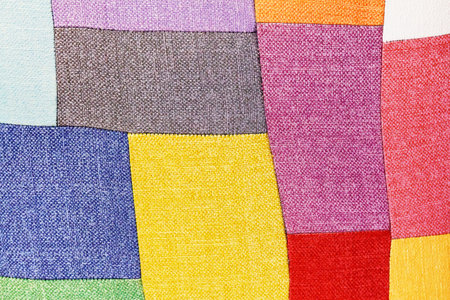 Background texture. silk bright fabric Mosaic geometric shapes Composition with colorful stained glass Grid design Illustration red blue purple white gray colors