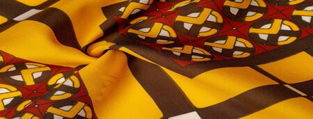 Background texture. silk bright fabric Mosaic geometric shapes Composition with colorful stained glass Grid design Illustration red yellow brown colors
