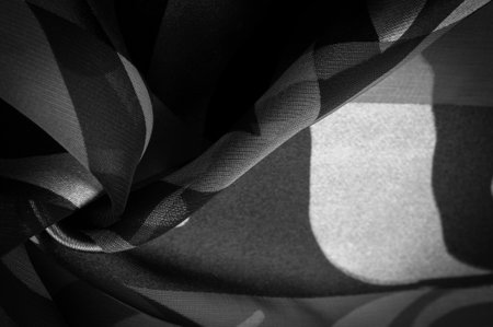 thin knitted fabric - light transparent, black and white, monochromatic geometric colors, similar to a veil made of thin viscose silk. organza pattern.