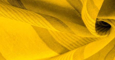 Texture. Background. Silk fabric of yellow color, of the color between green and orange in the spectrum, a primary subtractive color complementary to blue; colored like ripe lemons or egg yolks.