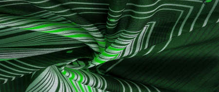 silk fabric, green background, with striped pattern of white and green lines, Spanish theme, texture, pattern, collection