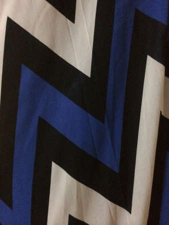 Delicate blue silk chiffon in vibrant colors with geometric print. Surprisingly light, smooth, sandy to the touch fabric. texture.