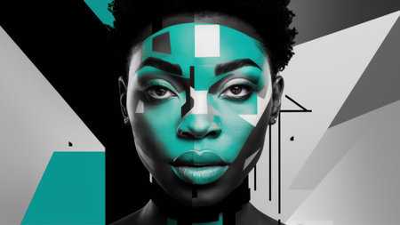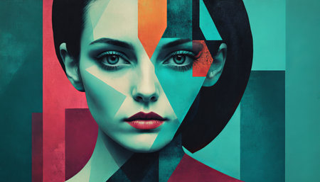 Abstract geometric portrait of a woman with bold colors and shapes.