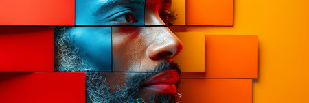 AI Generated. Innovative collage representation of a male face using bright and colorful paper textures symbolizing creativity and positive vibes for graphic design projects