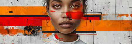 Vibrant and Artistic Beauty Portrait Featuring Bold Makeup Accents and Unique Abstract Patterns