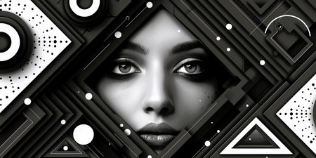 Captivating portrait art merging human features with geometric shapes, showcasing emotion and texture through a unique black-and-white composition.