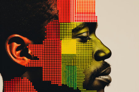 Stunning Abstract Profile Portrait Colorful Tiled Mosaic Data Visualization in Cyberpunk Style Art