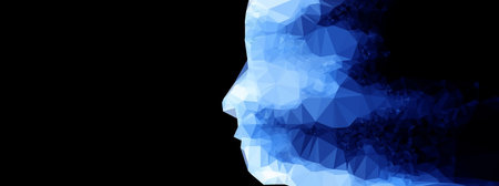Silhouette of 3d low poly human head. Concept of Artificial Intelligence and Neural Network. Generative AI illustration