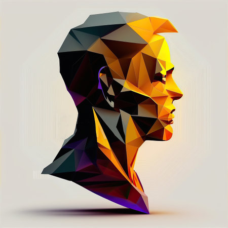 Ai generated illustration of lowpoly close up of male face