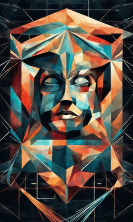Digital Illustration of a Human Face in a Geometric Shape Art
