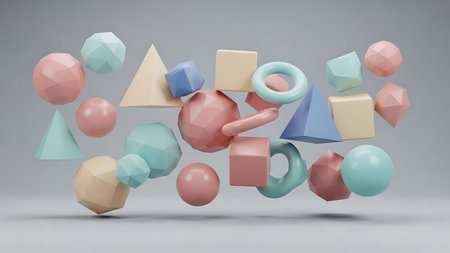 Abstract 3d rendering of geometric shapes in pastel colors, beautiful background design